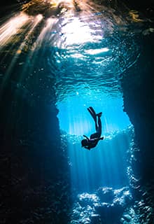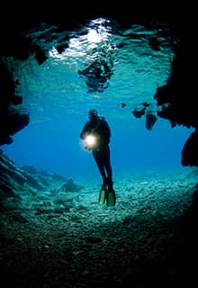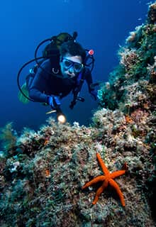 Çeşme, berrak deniziyle ve barındırdığı çok çeşitli deniz canlılarıyla size eşsiz bir dalış deneyim sunar. Dalış alanları arasında, su altı fotoğrafçıları tarafından çok sevilen muhteşem bir mağara olan Yatak Odası ve deneyimli dalgıçların 45 metre aşağıya inebileceği Eşek Adası’ndaki Ayrık Kaya bulunuyor.