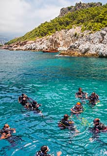 Marmaris'te denizin dibi de yeryüzü kadar çekicidir. Berrak sular ve mükemmel görüş mesafesi sayesinde bölgedeki en popüler su sporlarından birisi dalıştır. İster ekipman kiralayın ister rehberli bir tüplü dalış gezisine katılın, tanık olacağınız engin deniz yaşamı, nadir kaya oluşumları ve dik duvarlar sizi hayal kırıklığına uğratmayacak!