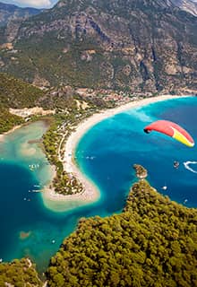 Yamaç paraşütü, Ölüdeniz'in beyaz kumlarına iniş muhteşem bir deneyim olacak. Yeryüzü şekli itibariyle, rüzgarlar hafif ve sahil uzun olduğu için sakin, Ölüdeniz’e yavaş ve kolay bir iniş her zaman garantidir.